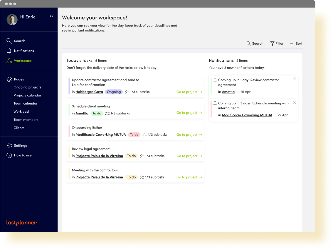 See an overview of your ongoing projects all at once